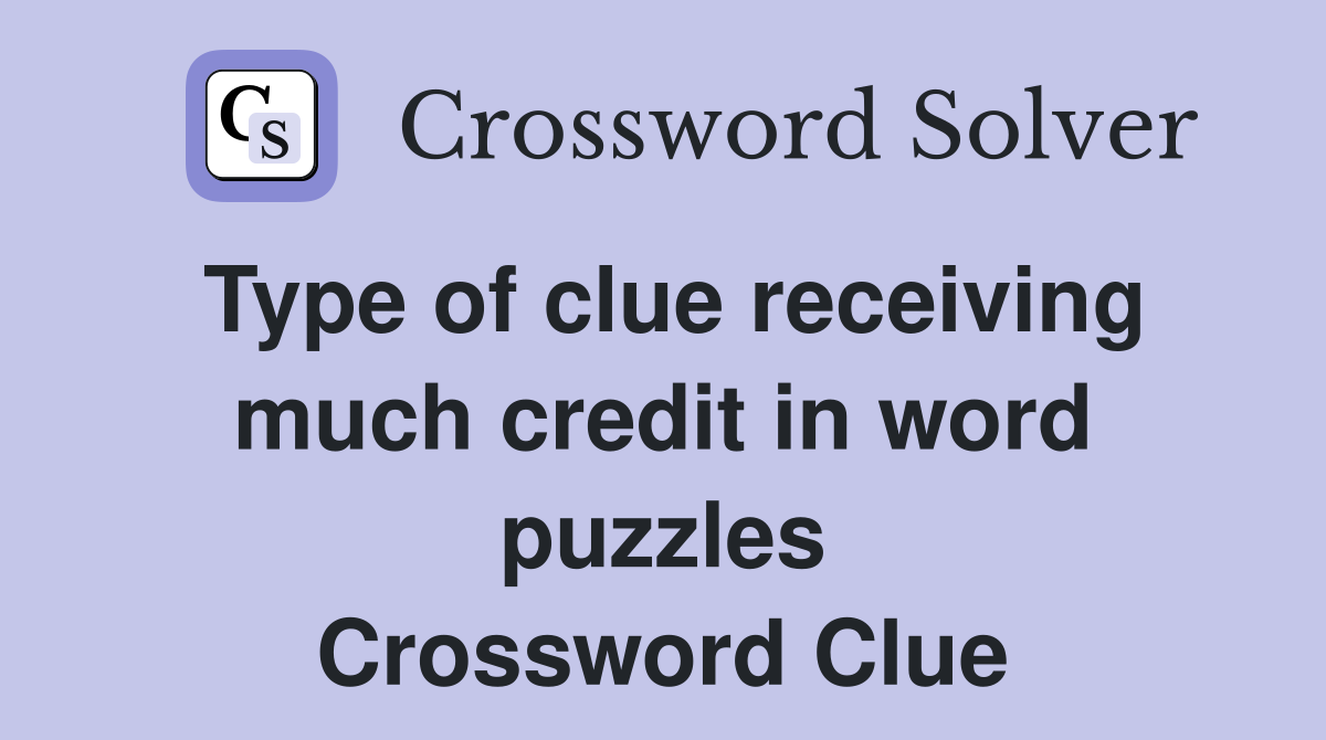 Type of clue receiving much credit in word puzzles Crossword Clue