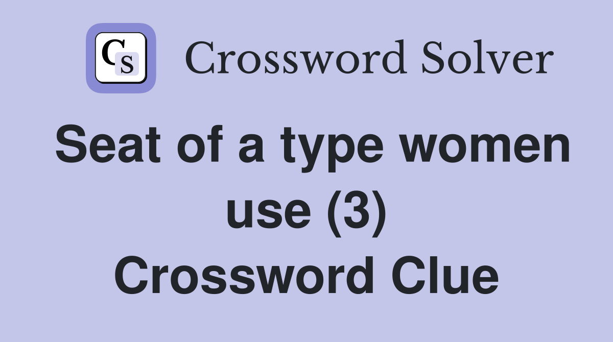 Seat of a type women use (3) Crossword Clue Answers Crossword Solver
