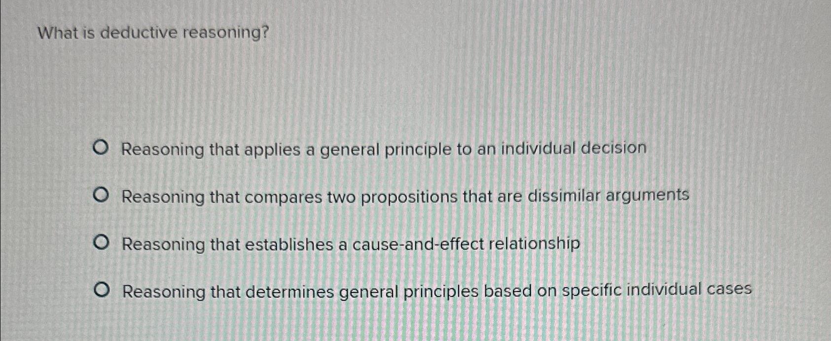 Solved What is deductive reasoning?Reasoning that applies a Chegg com