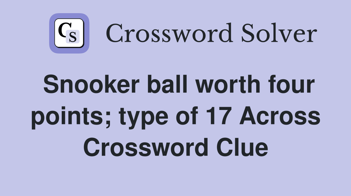 Snooker ball worth four points type of 17 Across Crossword Clue