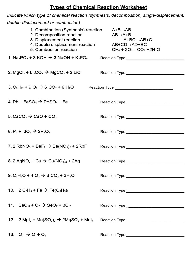 Free Printable Types of Reaction Worksheet Answers Worksheets Library