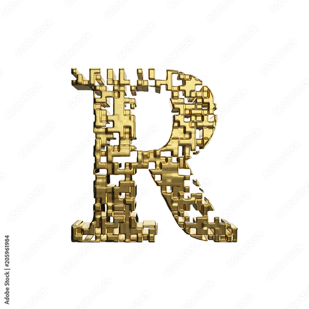 Alphabet letter R uppercase Golden font made of yellow metallic shapes