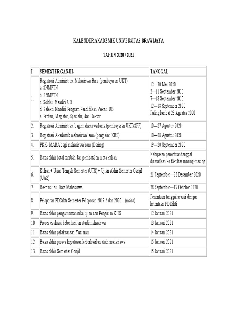 Kalender Akademik Fakultas Ekonomi dan Bisnis Universitas Brawijaya