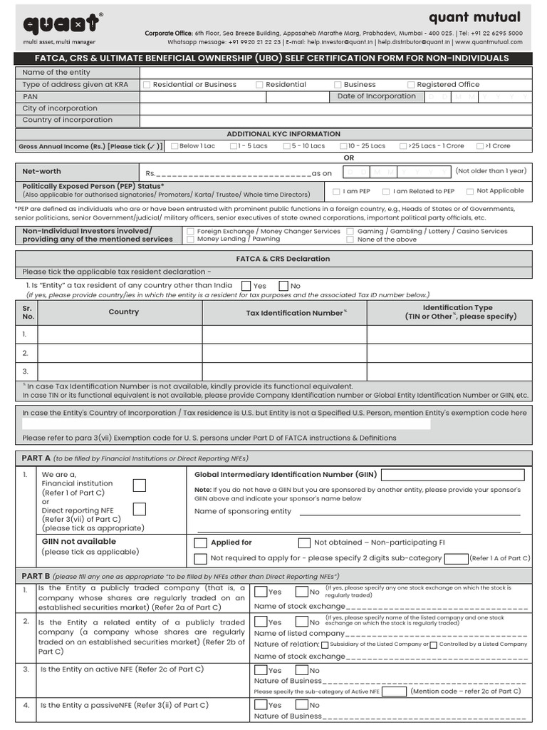 Axis Mutual Fund Fatca And Ubo Form For Non Individual Fill and Sign