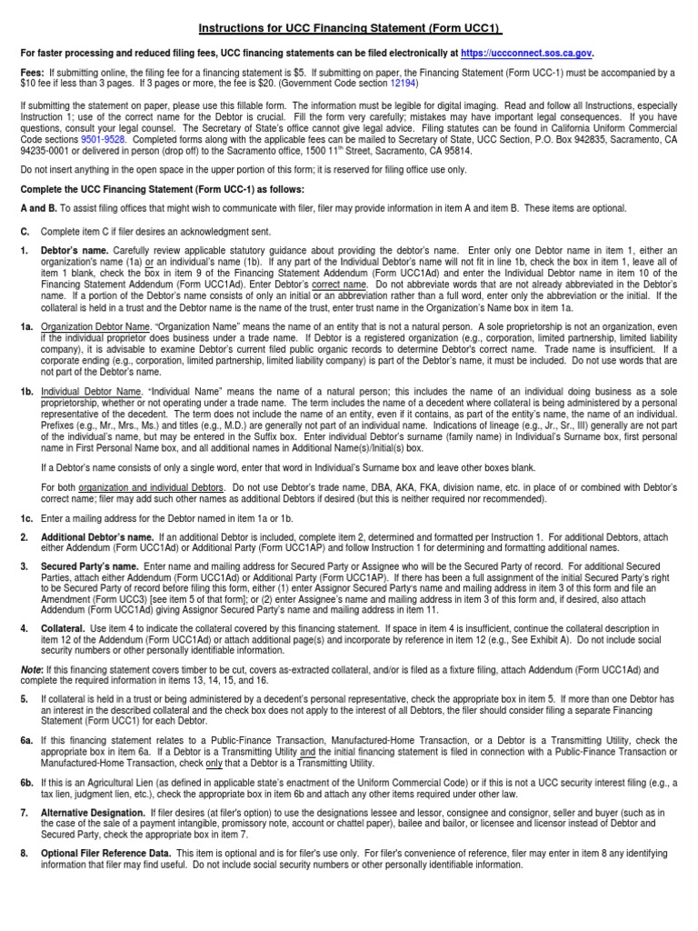 UCC1 Instructions PDF Debt Security Interest