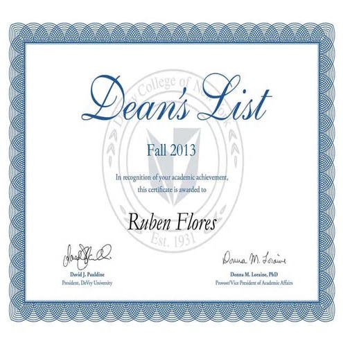 Deans list certificate PDF