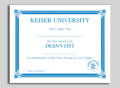 Dean #39 s List Certificate Keiser University