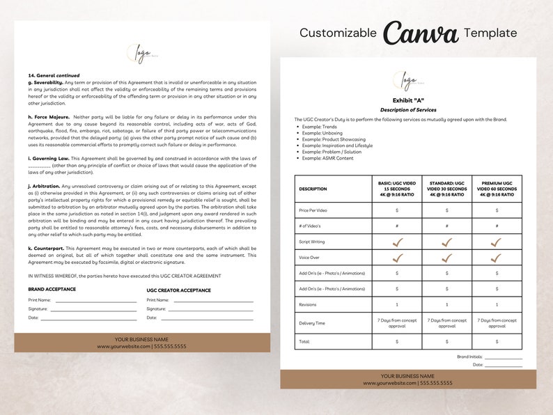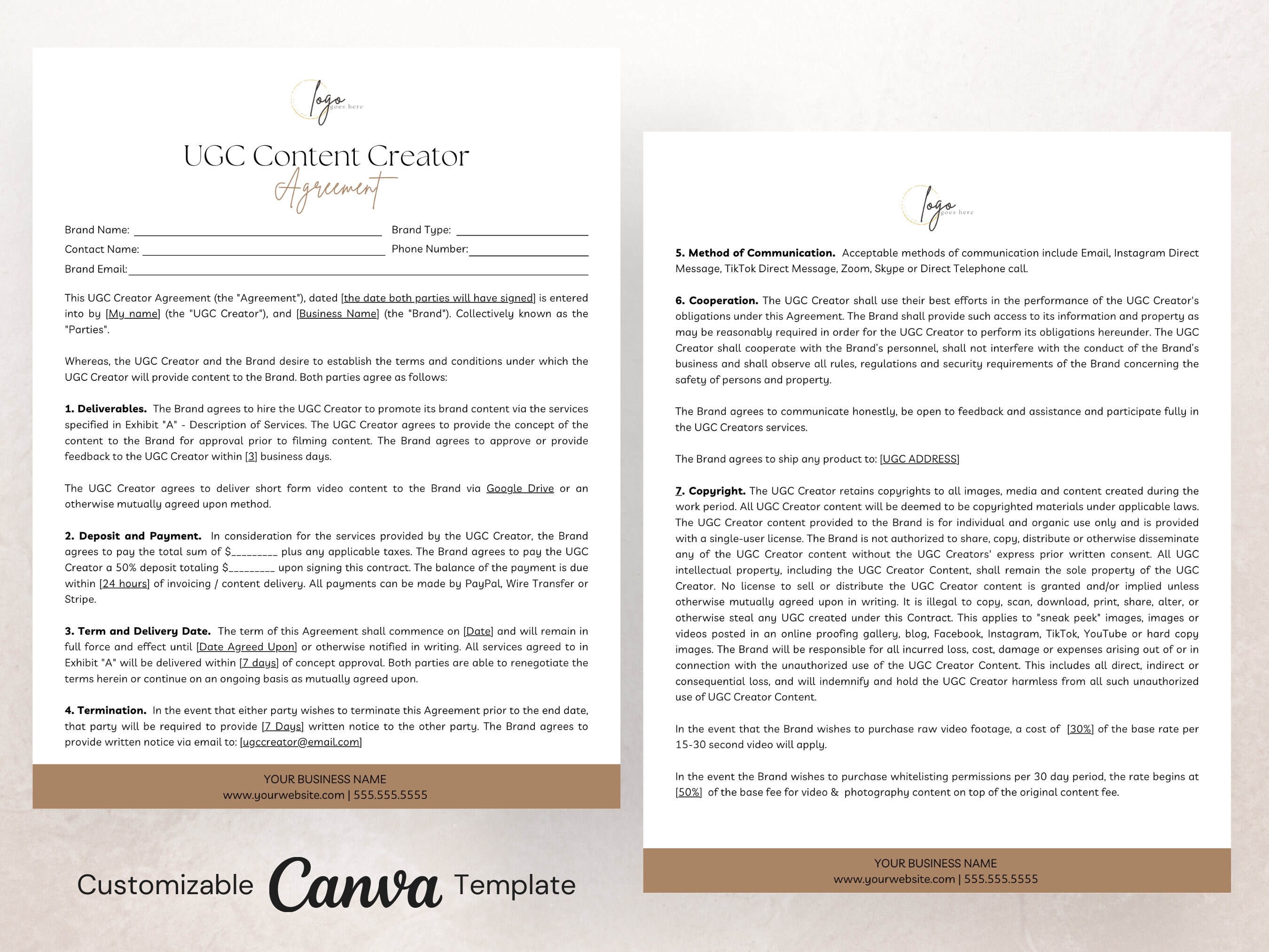 UGC Contract Template Fully Editable UGC Agreement Template Etsy
