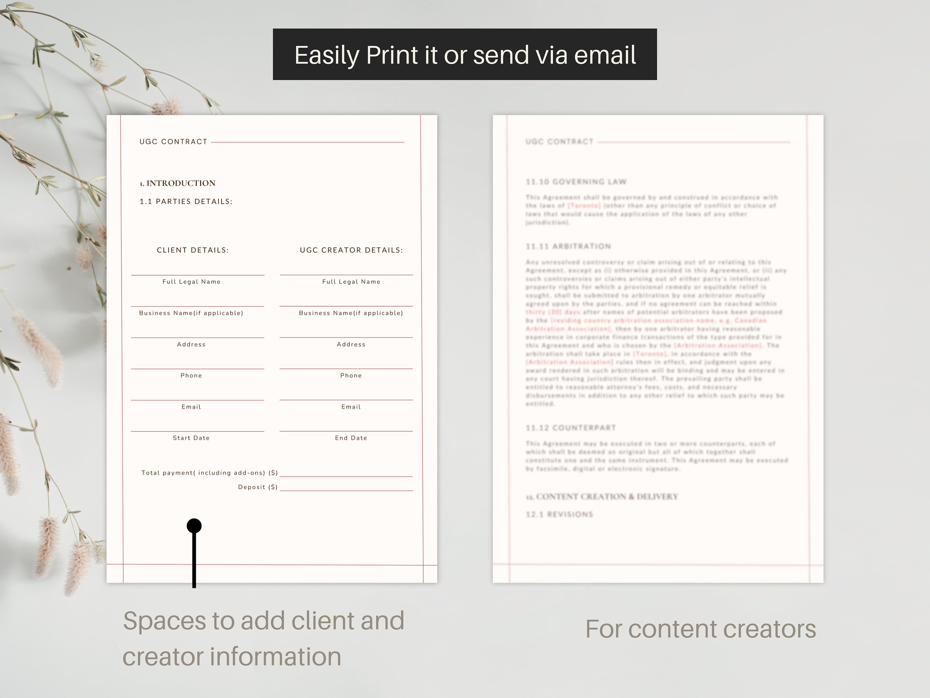 UGC Contract Template for UGC Creator Simple Influencer Contract