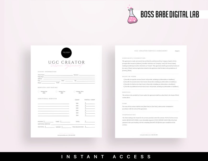 Professional UGC Creator Contract Template UGC Template UGC Etsy
