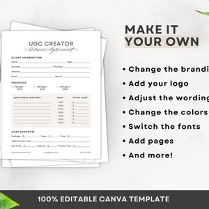 7 Page Editable UGC Creator Contract Template professional Etsy