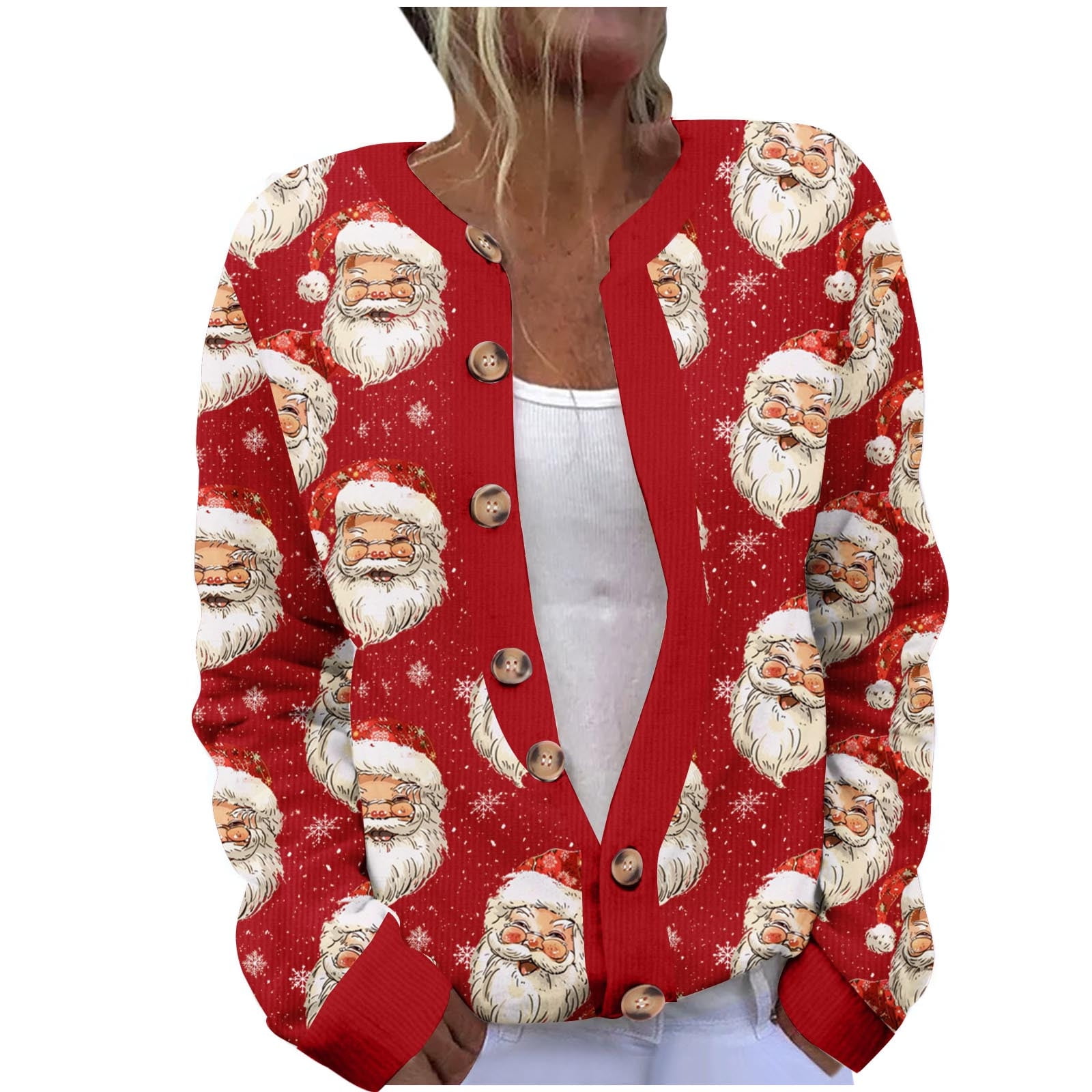 Ugly Christmas Sweaters for Women Open Front Cardigan Button Knit Long