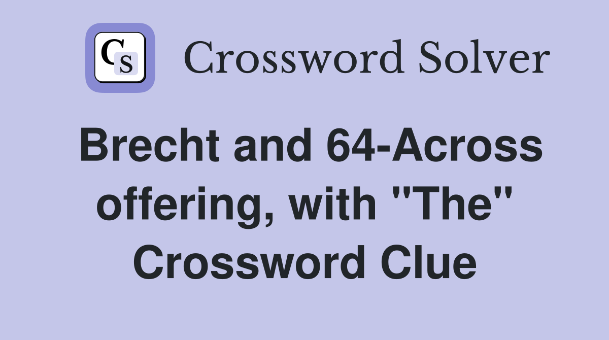 Brecht and 64 Across offering with quot The quot Crossword Clue Answers