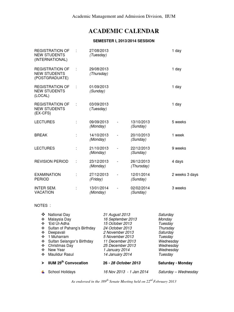 IIUM Academic Calendar 1314 PDF Academic Term Educational