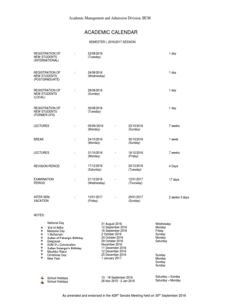 IIUM Academic Calendar 2018 2019 PDF Academic Term Educational