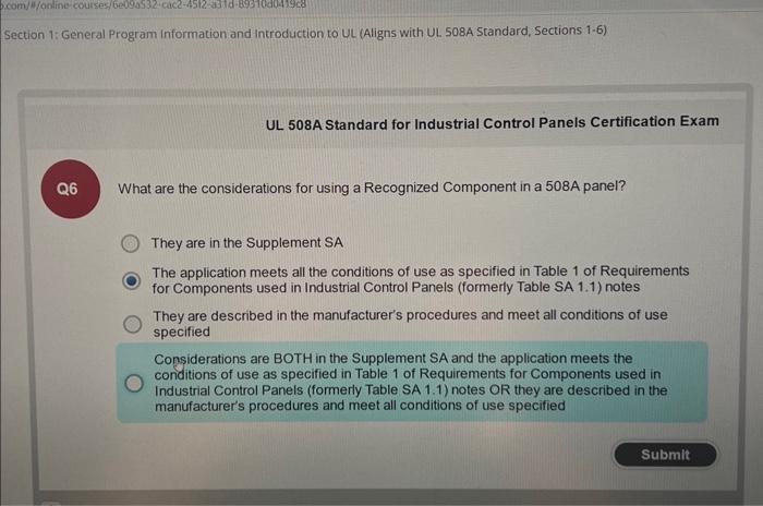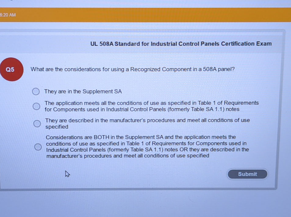 Q9 UL 508A Standard for Industrial Control Panels Certification Exam An