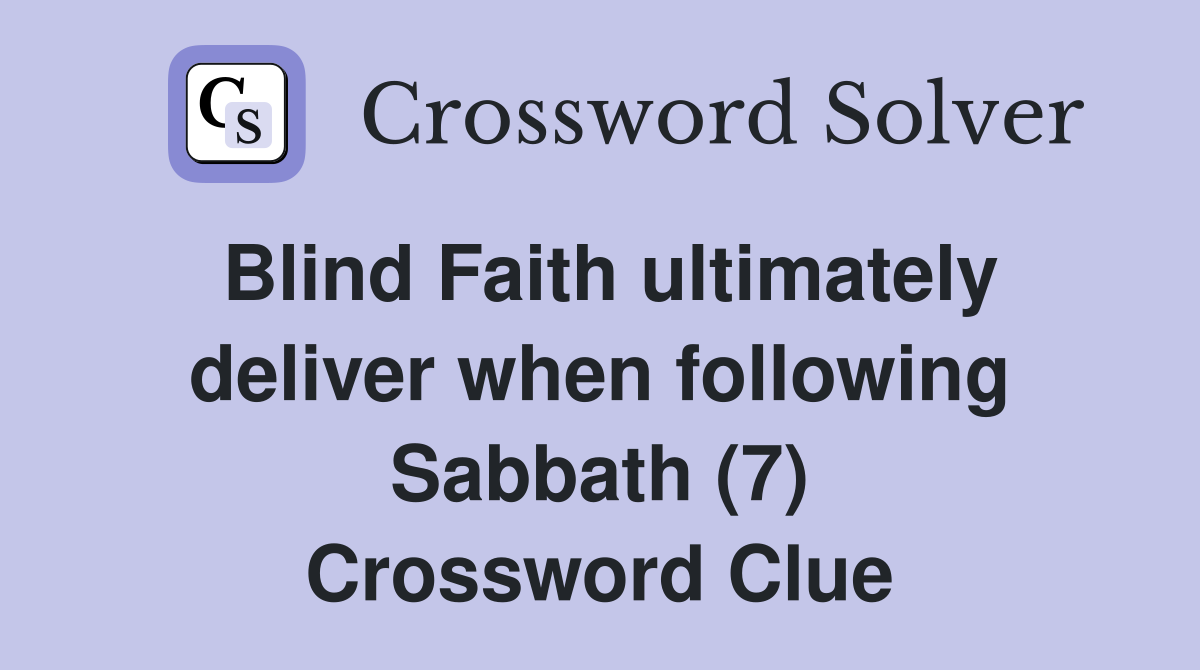 Blind Faith ultimately deliver when following Sabbath (7) Crossword