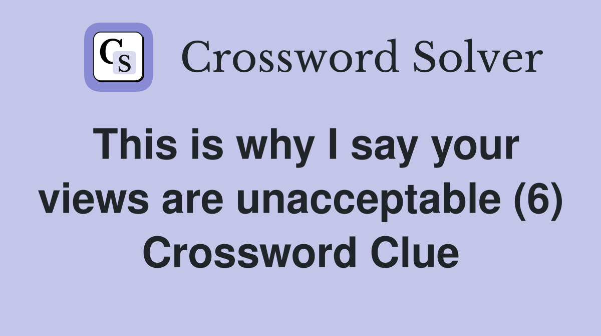 This is why I say your views are unacceptable (6) Crossword Clue