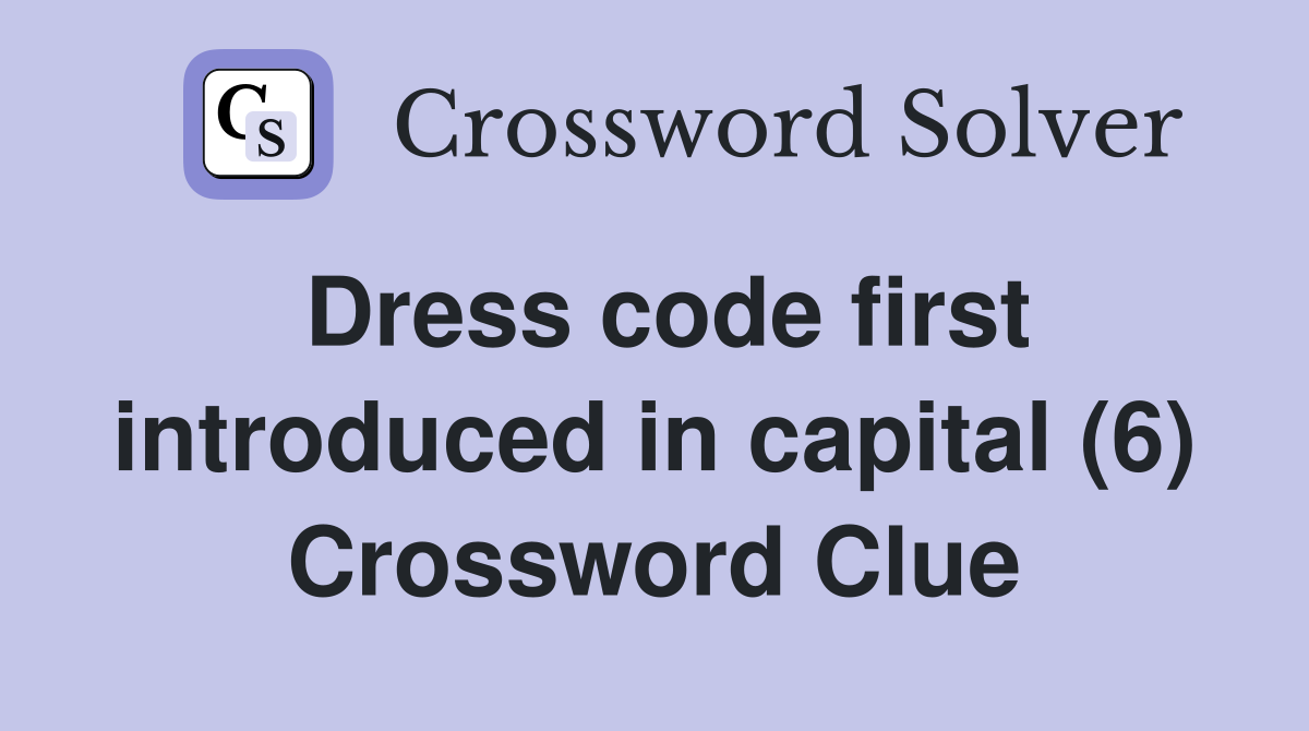 Dress code first introduced in capital (6) Crossword Clue Answers