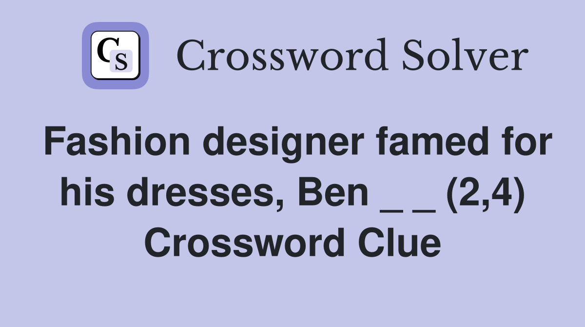 Fashion designer famed for his dresses Ben (2 4) Crossword Clue
