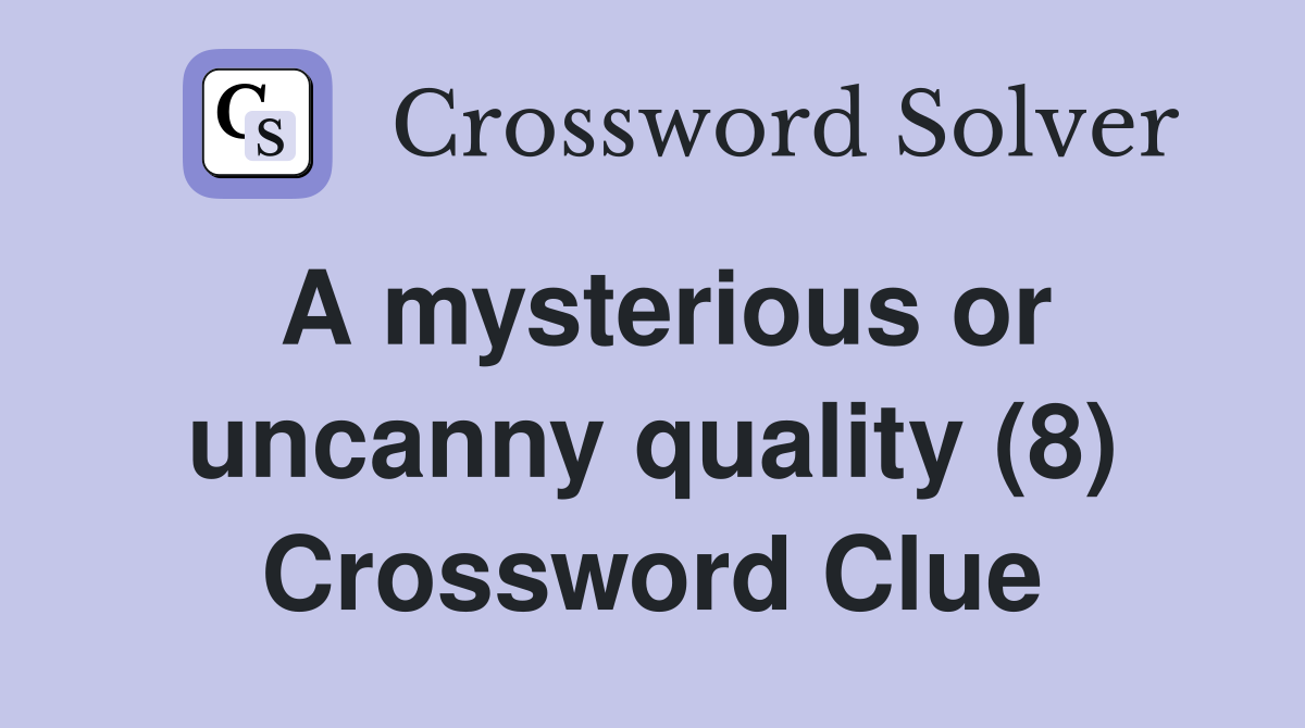 A mysterious or uncanny quality (8) Crossword Clue Answers