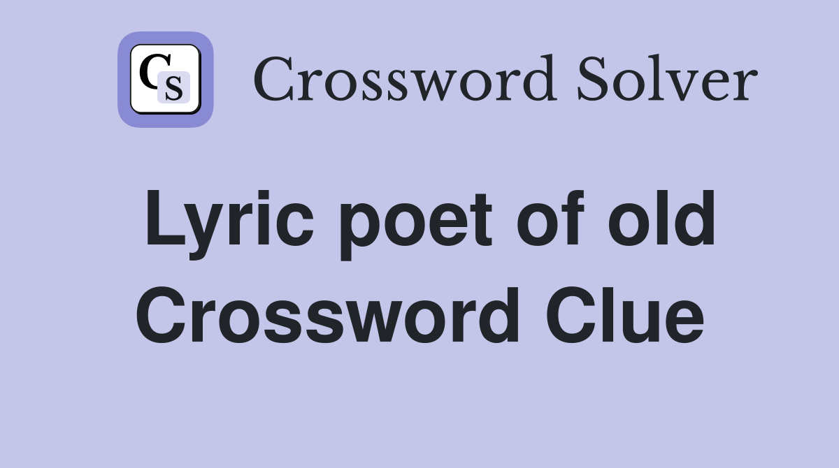 Lyric poet of old Crossword Clue Answers Crossword Solver