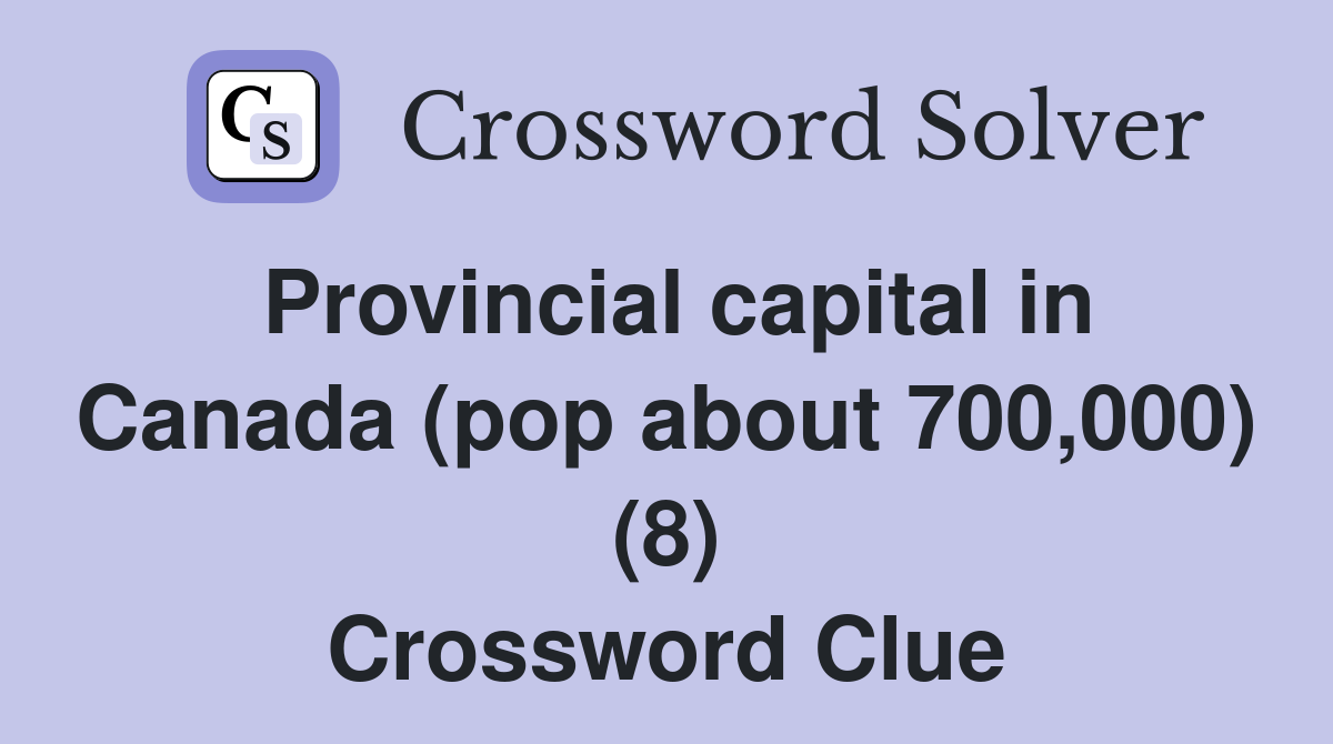 Provincial capital in Canada (pop about 700 000) (8) Crossword Clue