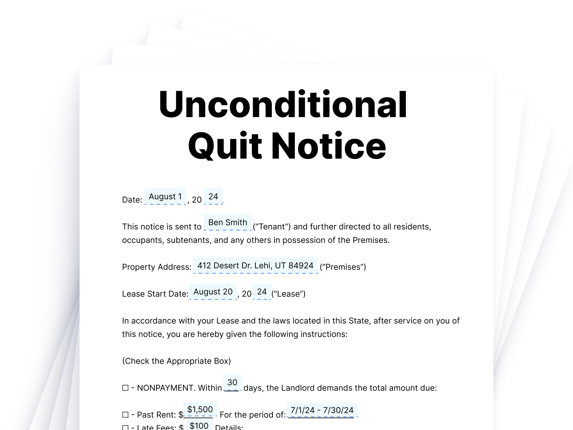 Unconditional Quit Notice Template Fill Online Printable Fillable