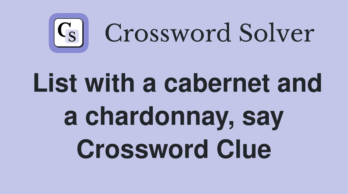 List with a cabernet and a chardonnay say Crossword Clue Answers