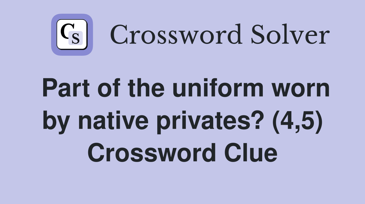 Part of the uniform worn by native privates? (4 5) Crossword Clue