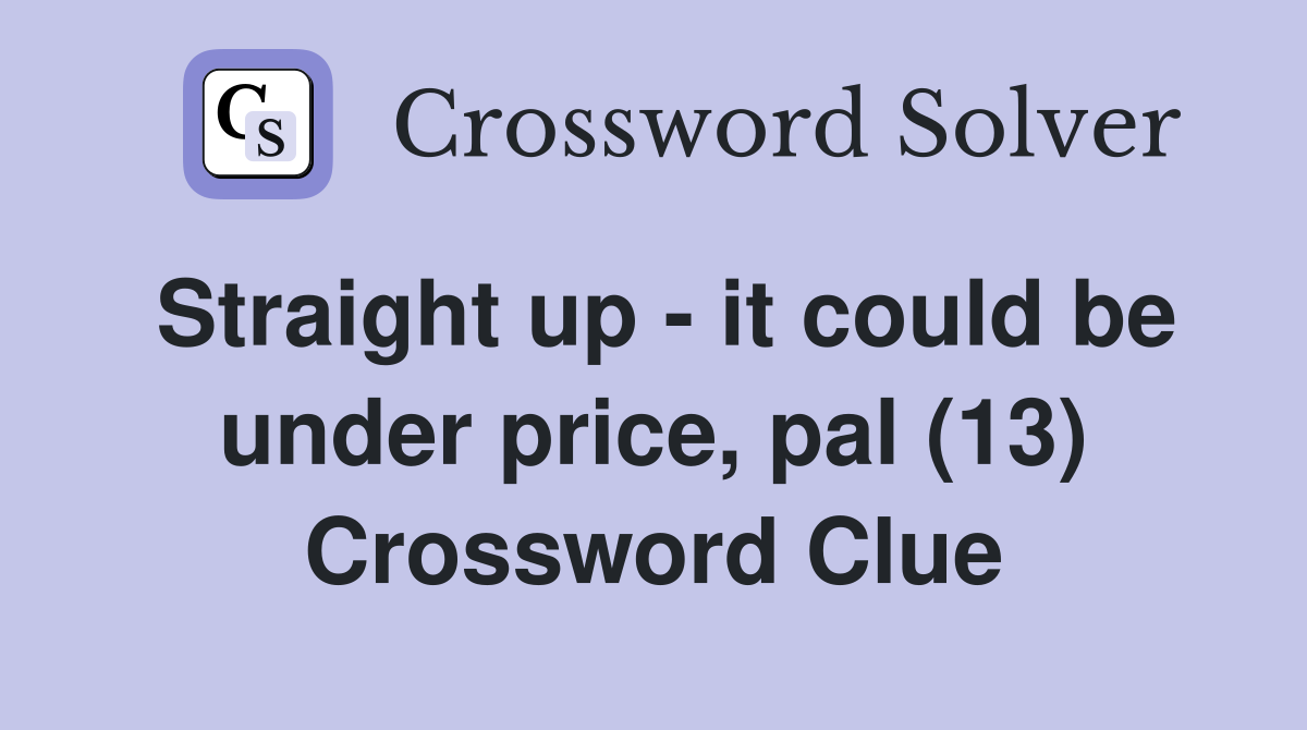 Straight up it could be under price pal (13) Crossword Clue