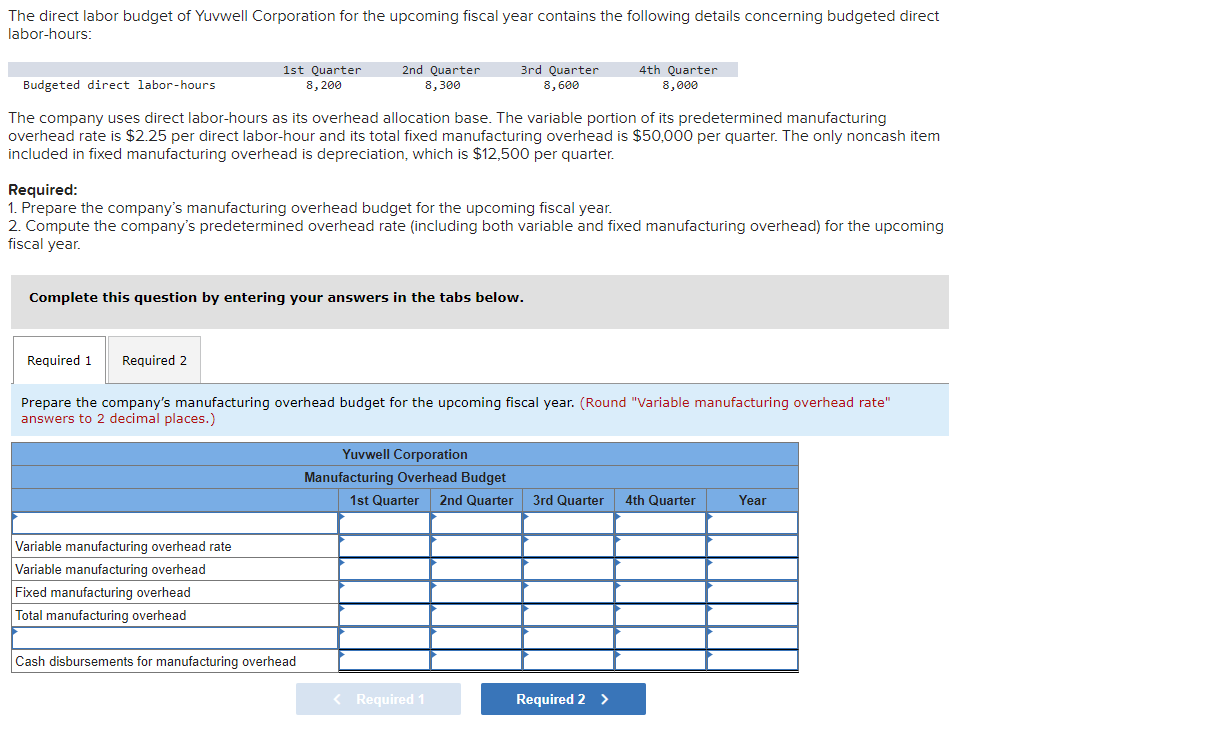 Solved The direct labor budget of Yuvwell Corporation for Chegg com