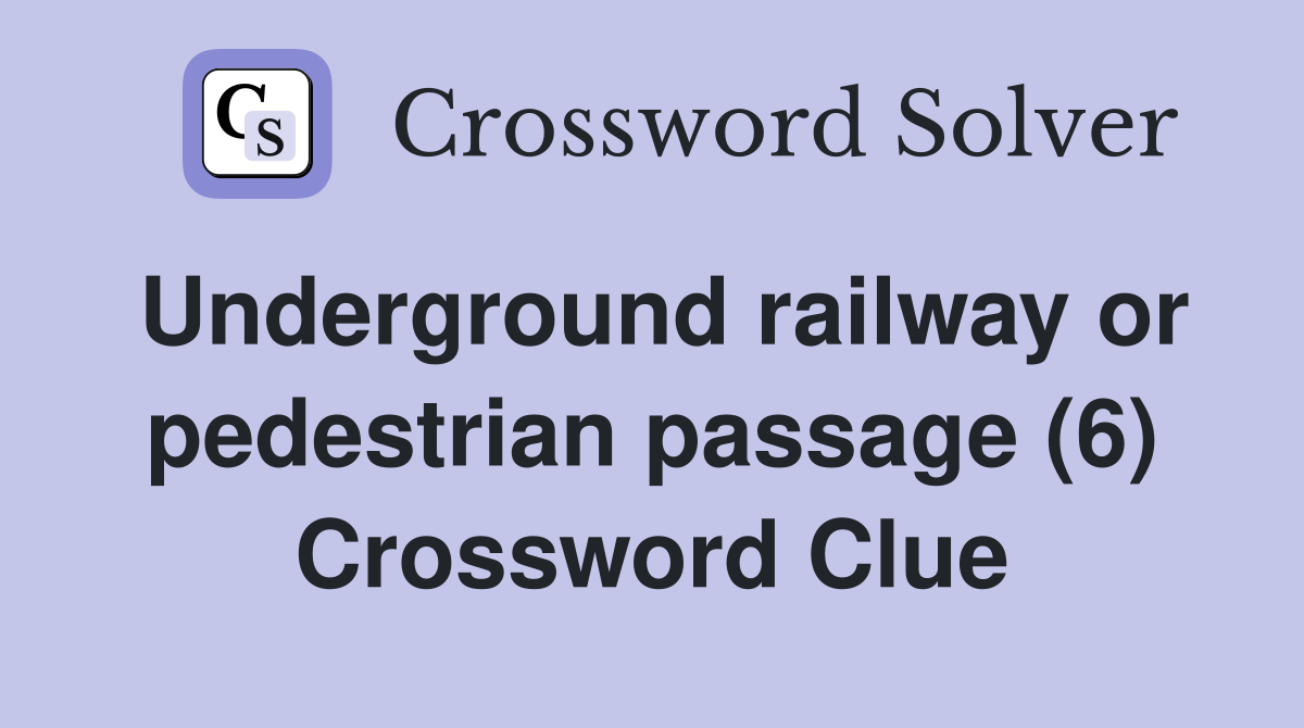 Underground railway or pedestrian passage (6) Crossword Clue Answers