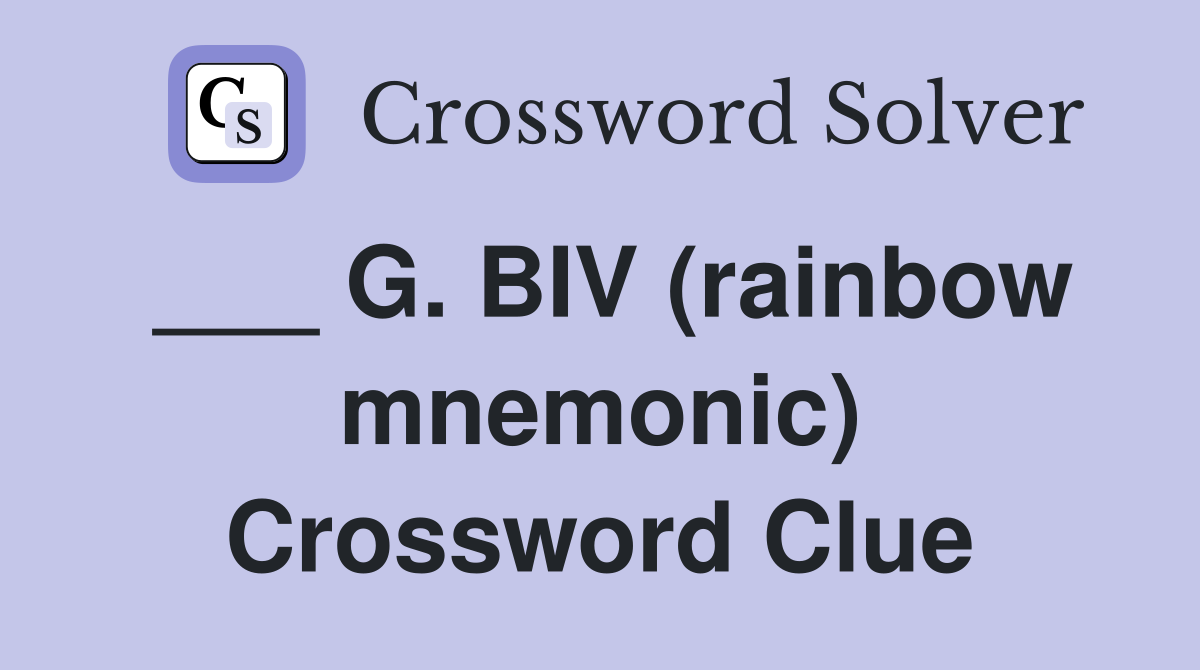 G Biv (rainbow mnemonic) Crossword Clue Answers Crossword Solver
