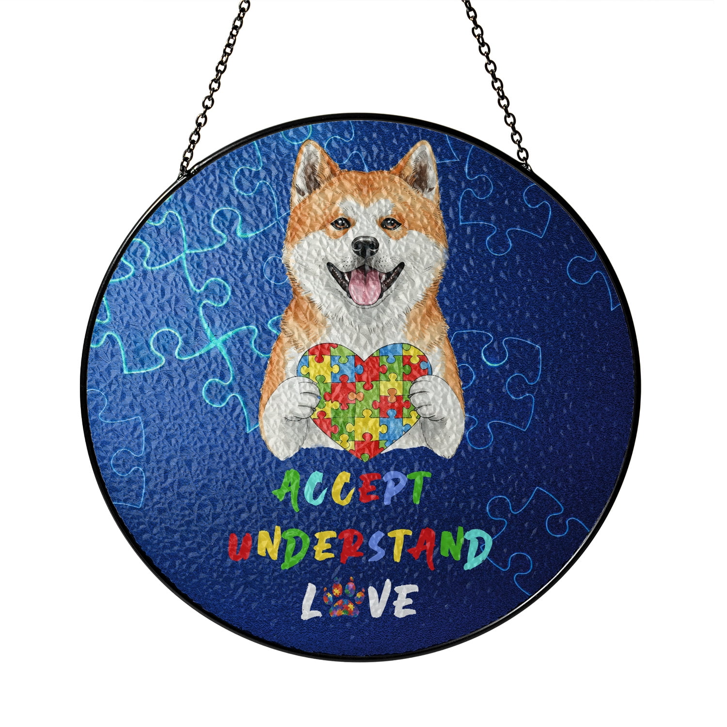 Autism Awareness Akita Accept Understand Love Stained Glass Suncatcher
