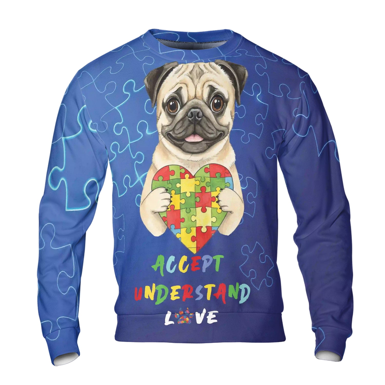 Autism Awareness Pug Accept Understand Love All Over Print 3D