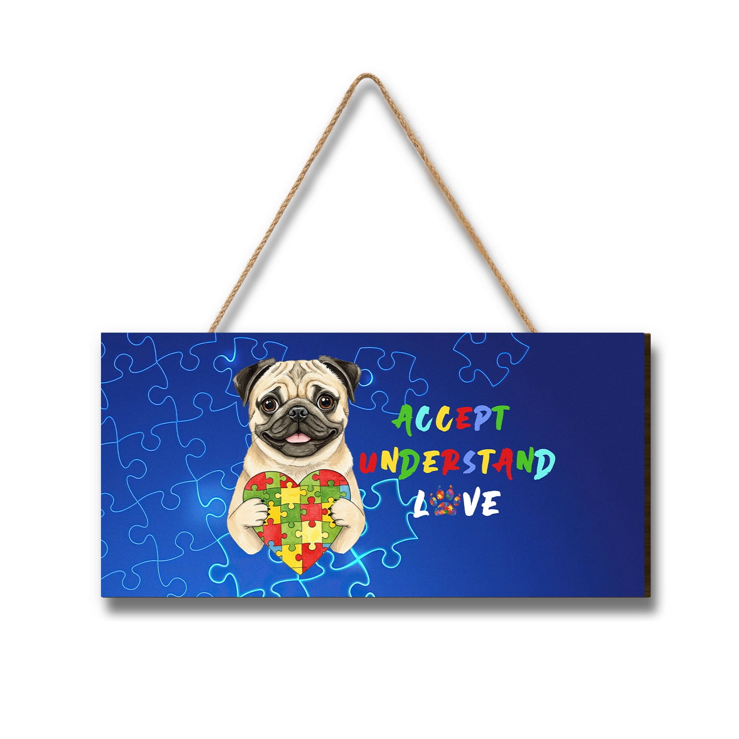Autism Awareness Pug Accept Understand Love Landscape Wood Sign Dog