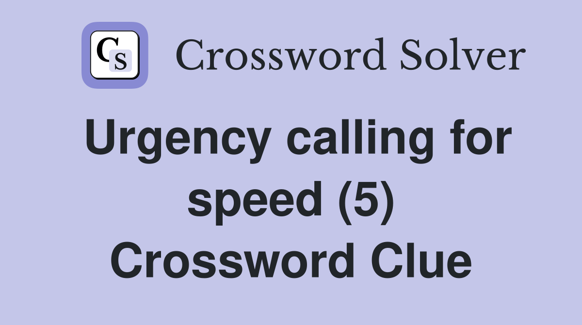 Urgency calling for speed (5) Crossword Clue Answers Crossword Solver