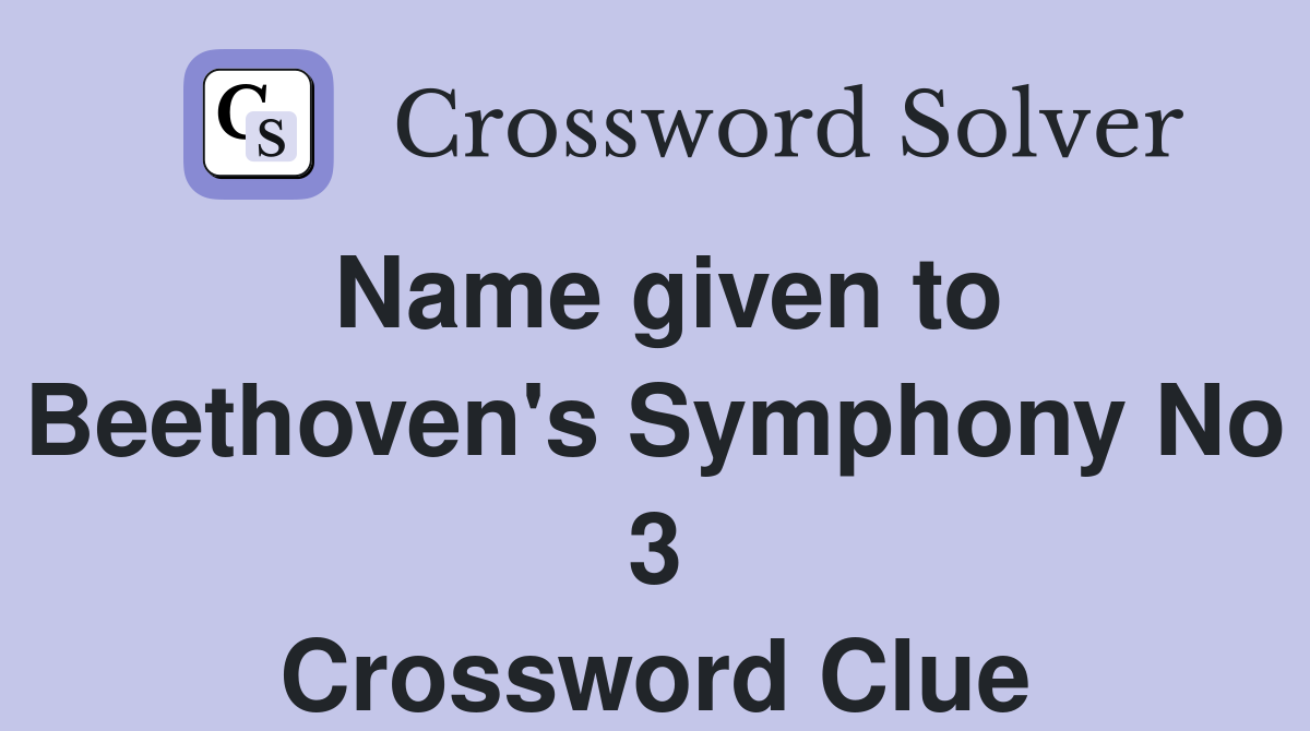 Name given to Beethoven #39 s Symphony No 3 Crossword Clue Answers