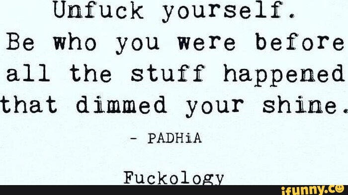Unfuck yourself Be who you were before all the stuff happened that