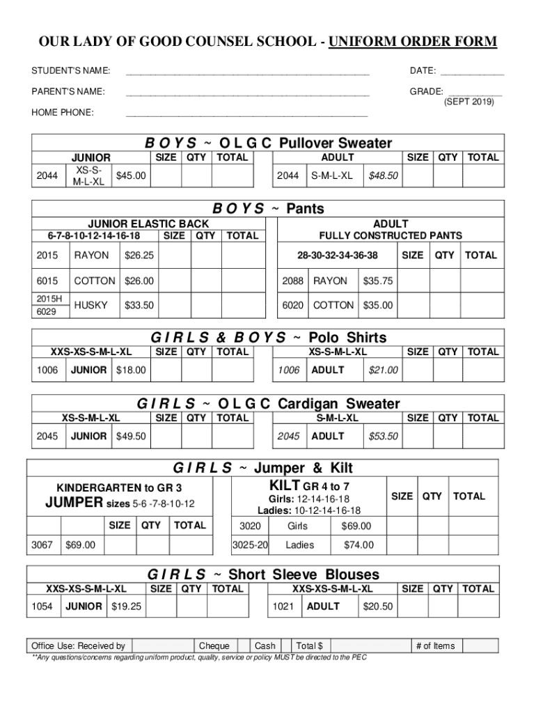 Fillable Online Uniform Order Surrey Our Lady of Good Counsel