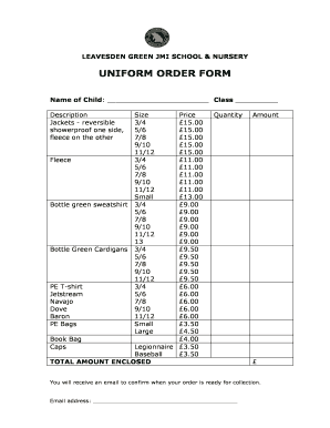Fillable Online Uniform Order Form Fax Email Print pdfFiller