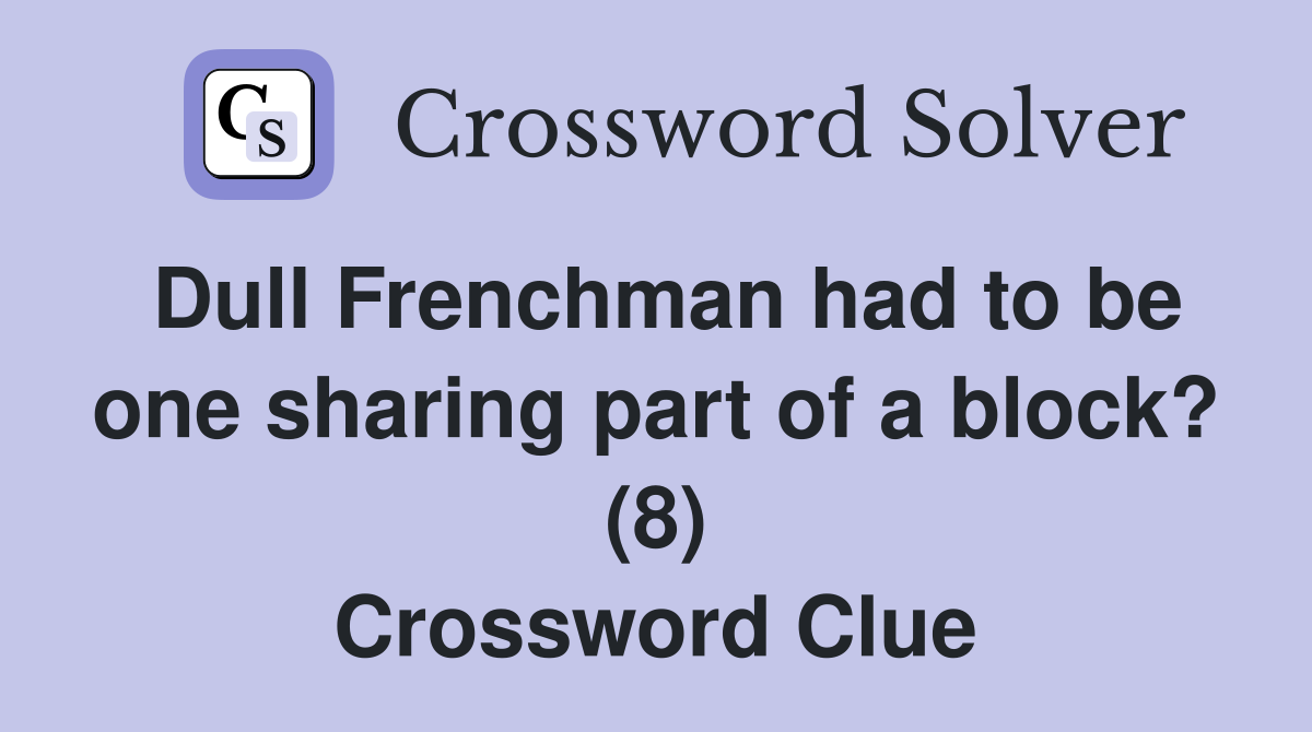 Dull Frenchman had to be one sharing part of a block? (8) Crossword