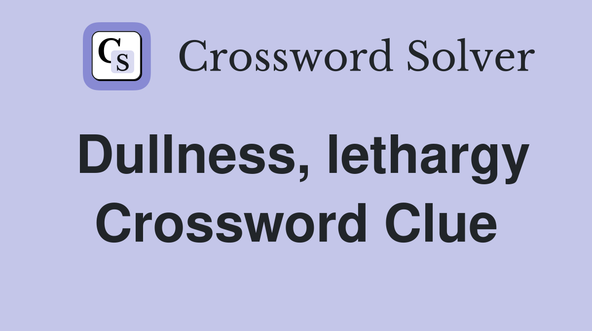 Dullness lethargy Crossword Clue Answers Crossword Solver