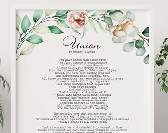 Union by Robert Fulghum Wedding Poem Wall Art Anniversary Gift