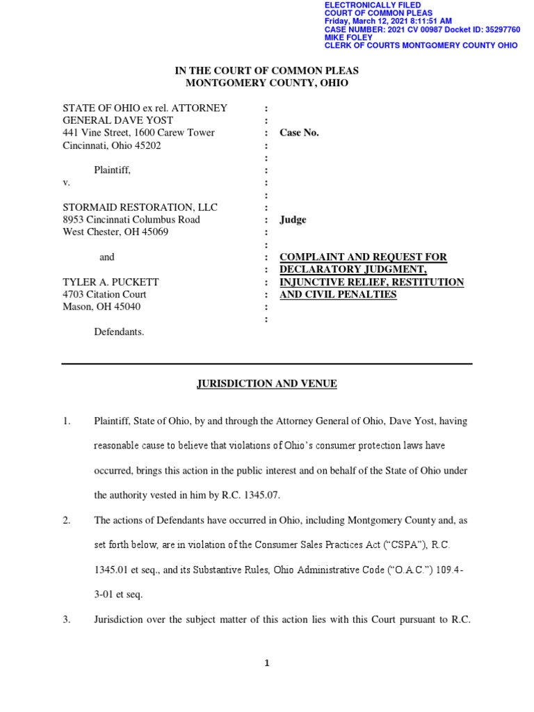 Court of Common Pleas Franklin County Ohio PDF Lawsuit Summary