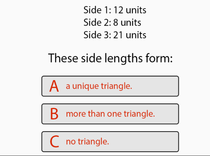 Determine whether each triangle below will form a unique triangle no