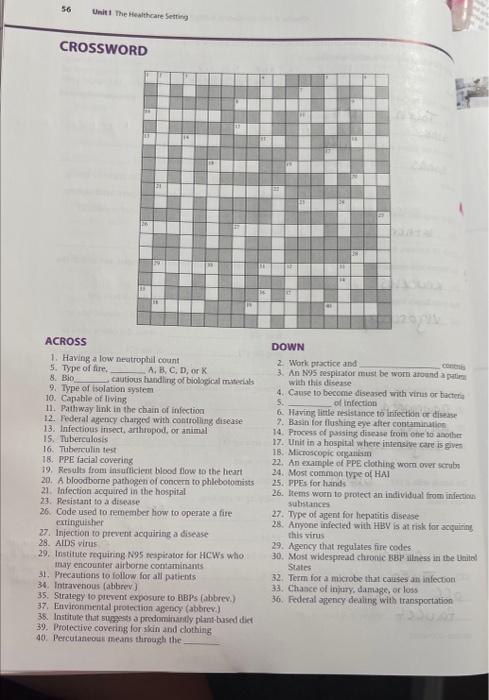 Solved 56 Unit 1 The Healthcare Setting CROSSWORD ACROSS 1 Chegg com