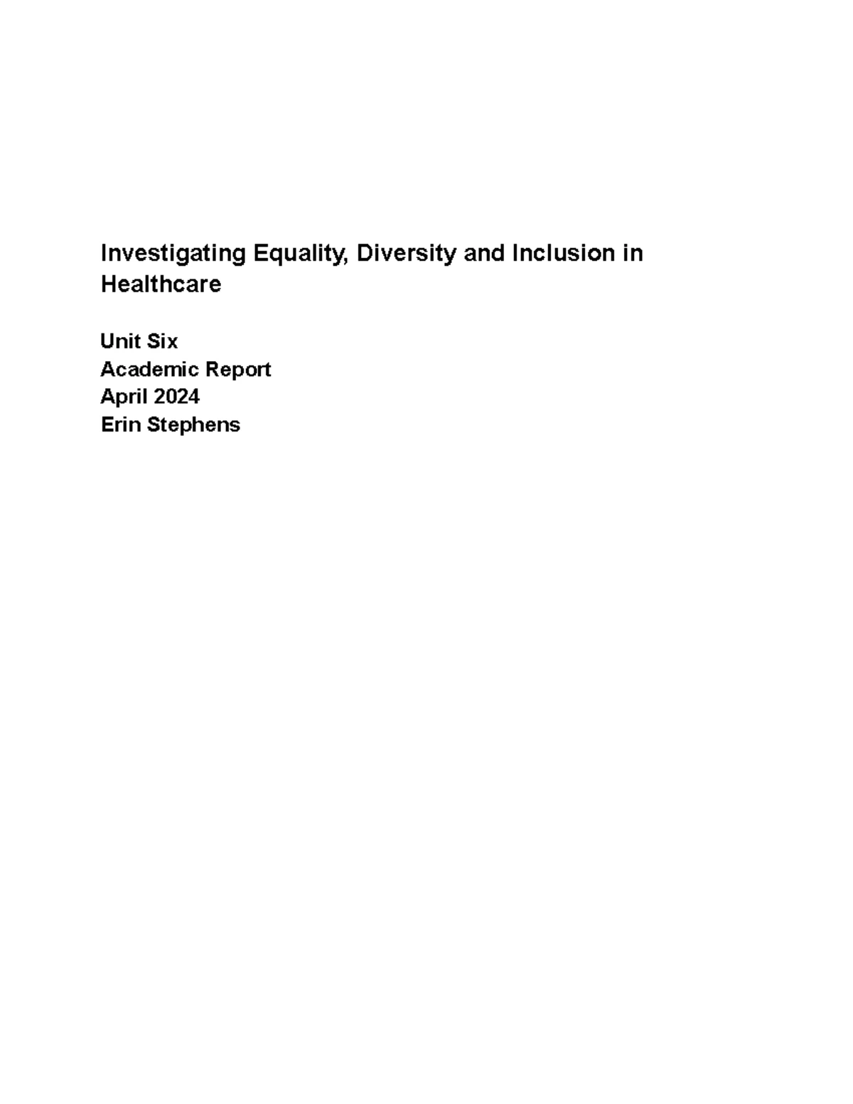 Unit 6 Equality Diversity and Inclusion in Healthcare Overview