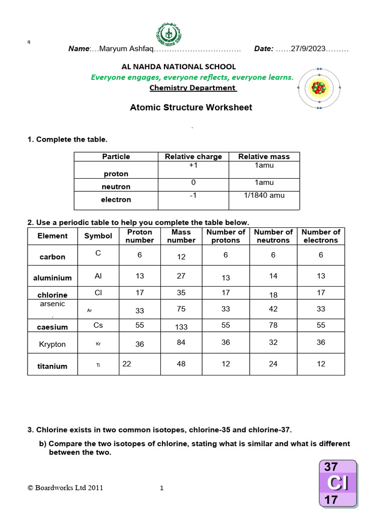 Atomic structure worksheet PDF Worksheets Library